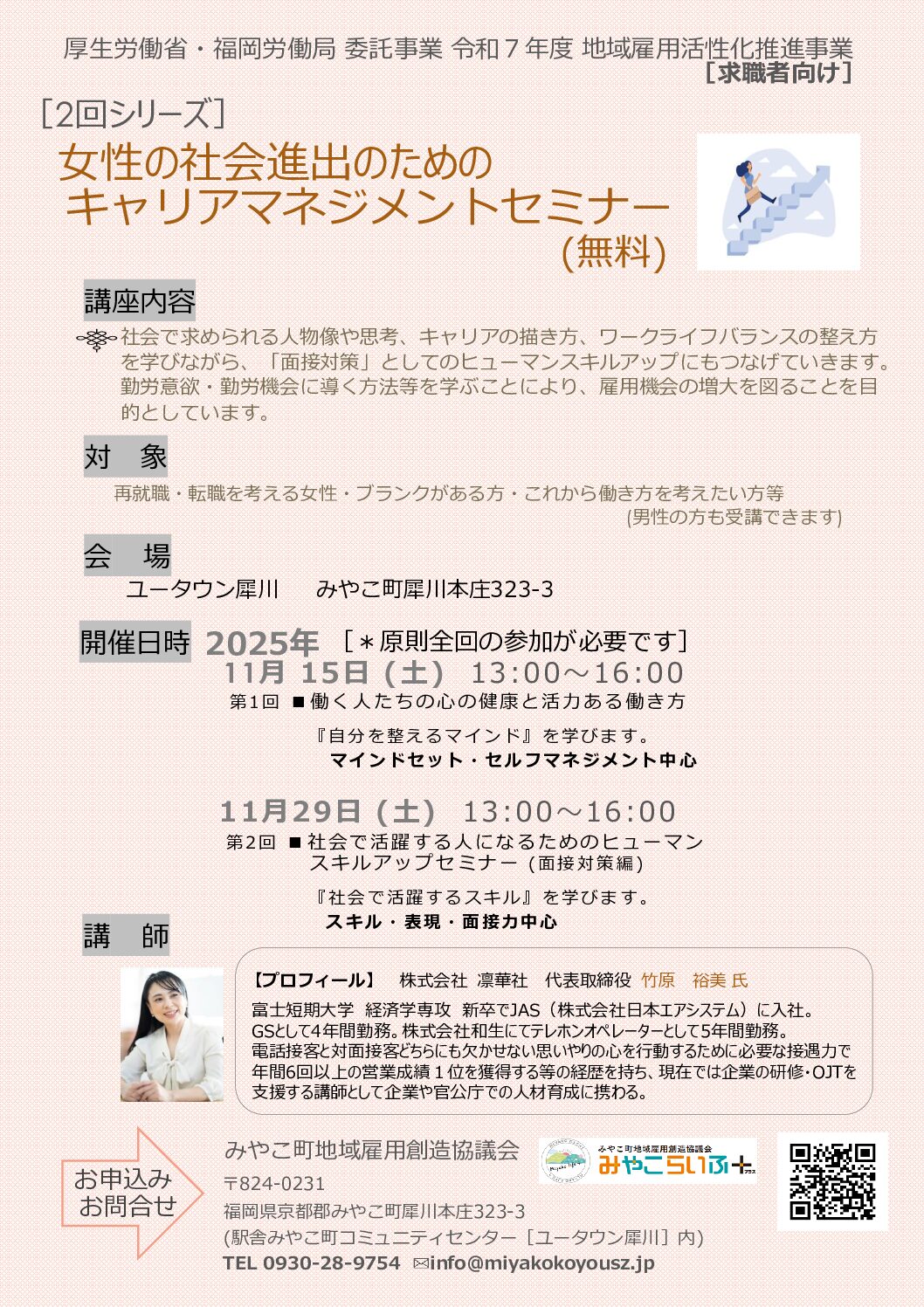 働く自分の「在り方」を見つめ直すきっかけとして、自分らしい社会での活躍のあり方を一緒に考え、働く意欲と目標管理につなげることを目的としています。